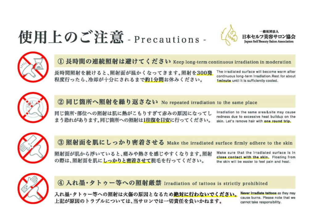※初めての方は、入口ドア横にあるセルフ脱毛の同意書を一読し、サインをお願いします。